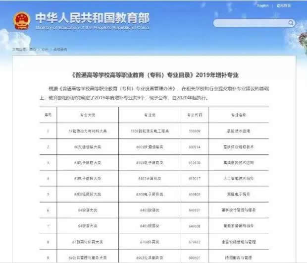 并公布了《普通G等學校G等職業教育(?)專業目錄》增補專業,包含人工智能技術服務的六大類,9個專業增補進入G職專業目錄,從2020年起執行。