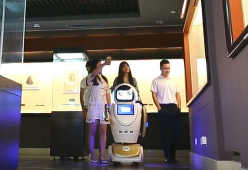 | 服務機器人在展館迎賓講解 |