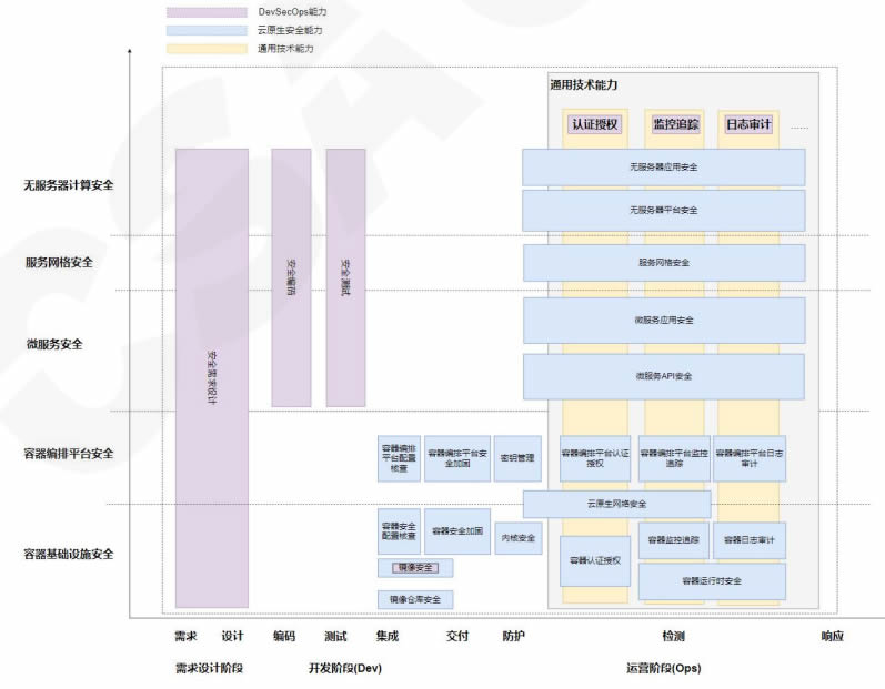 這些通用技術(shù)能力覆蓋 DevSecOps 中 Ops 階段,見(jiàn)圖 1 中黃色標(biāo)注部分。