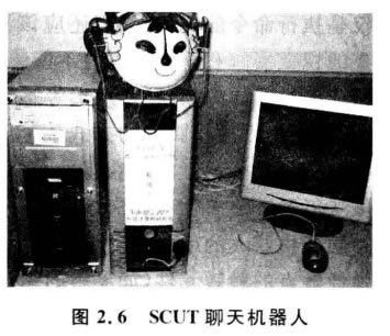 近年來,SCUT “智能計算機”科研團隊也對 聊天機器人展開了研究,如圖2.6所示。他們開 發的SCUT 聊天機器人包括攝像頭及驅動模塊、 語音拾取模塊、語音識別模塊、知識查詢模塊、語 音生成模塊;攝像頭捕獲人臉圖像,語音信號經 由語音拾取模塊和語音識別模塊后識別出語義,聊天機器人根據用戶的語音來了解用戶的需求,